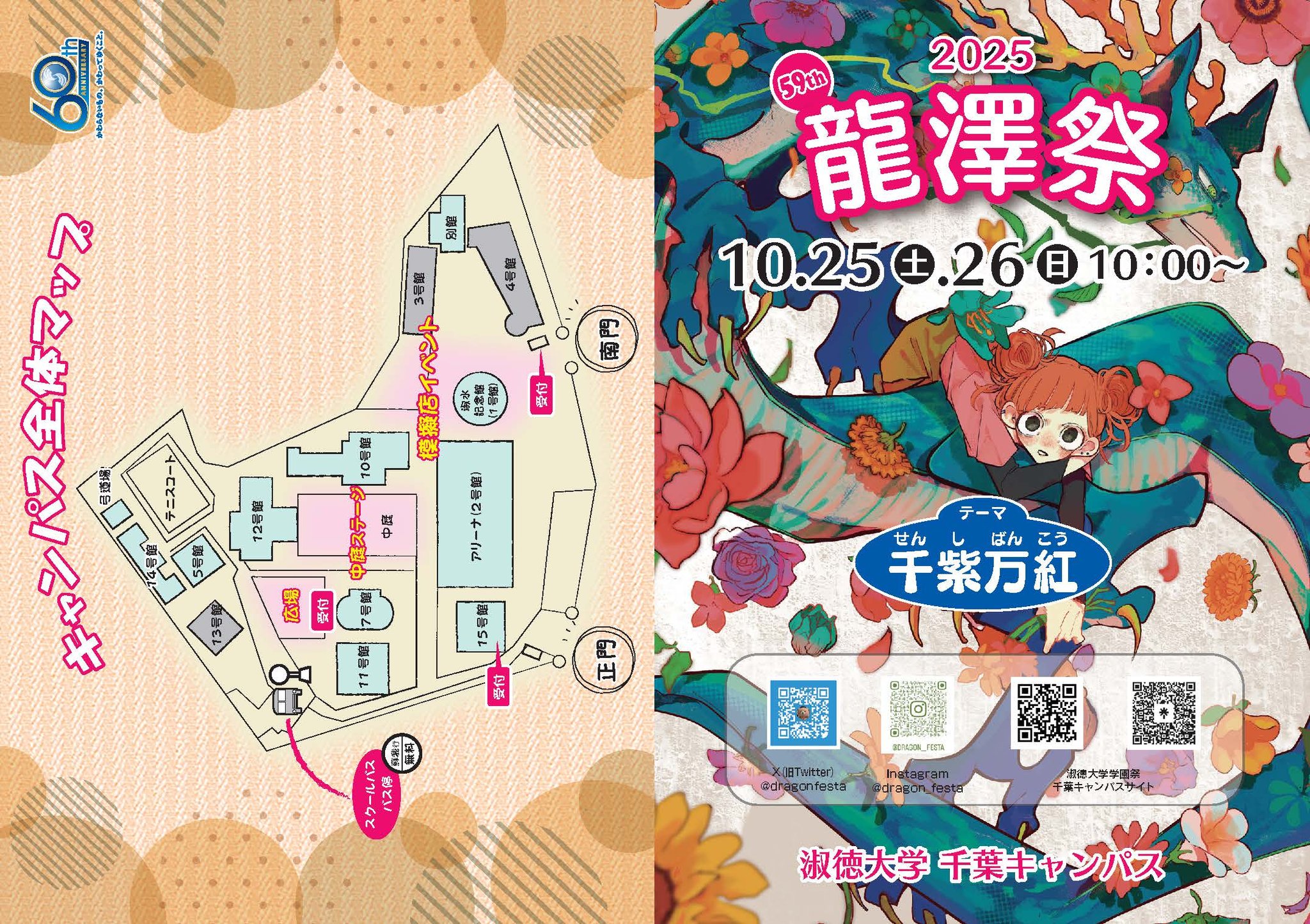 2025年度の龍澤祭のテーマは「千紫万紅」です。色とりどりに咲き乱れる花のように、個性豊かな発表や模擬店をどうぞお楽しみください。