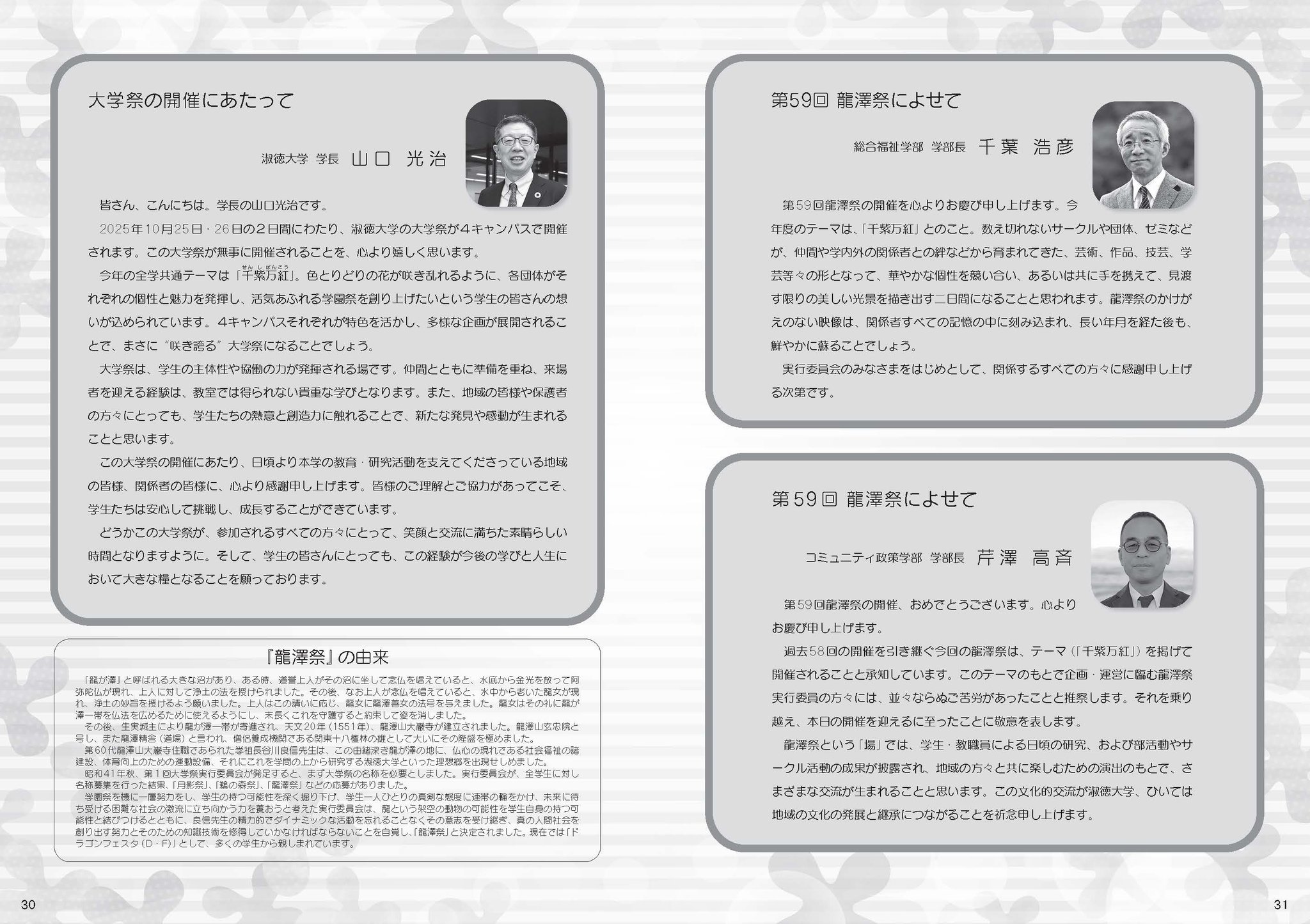 龍澤祭は今年度で59回目を迎えました。ご協力いただきました学生の皆さん、職員の方々、ご支援をしてくださる企業・会社様、そして地域の皆様に心より感謝申し上げます。ありがとうございます。