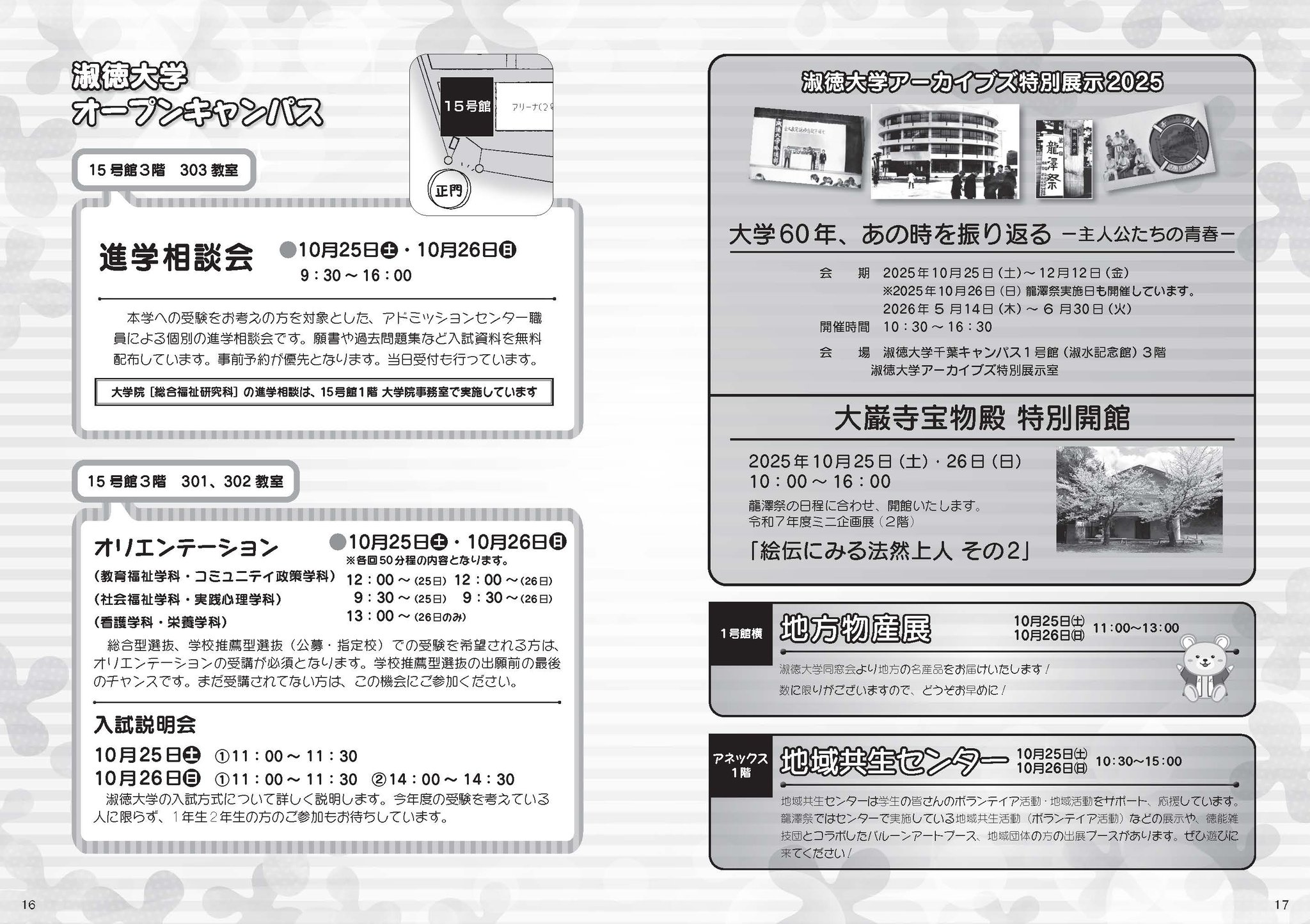 開 催 日 :2025年10月25日(土曜日) 13:00~16:30(受付 12:30~15 号館 2 階エレベーターホール)